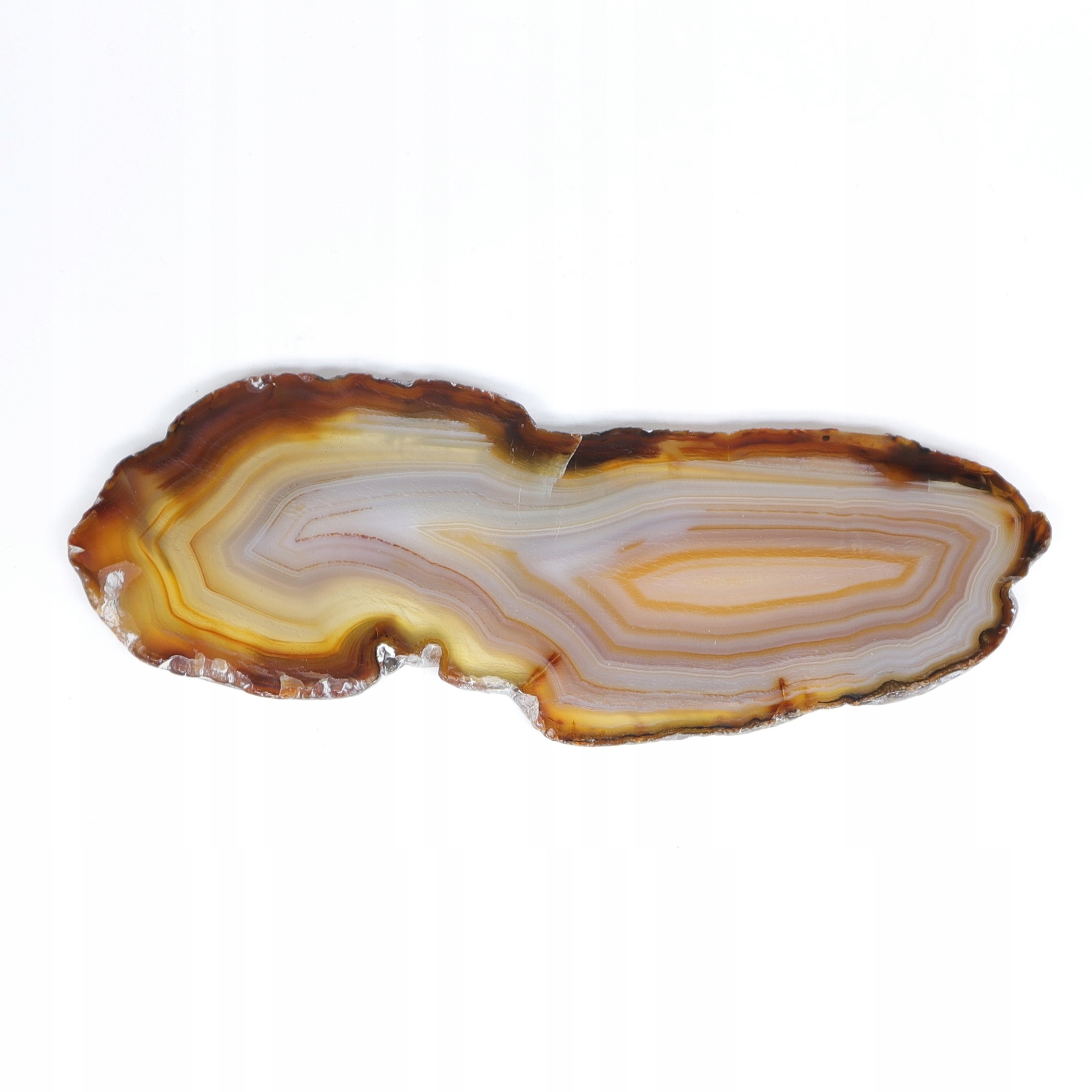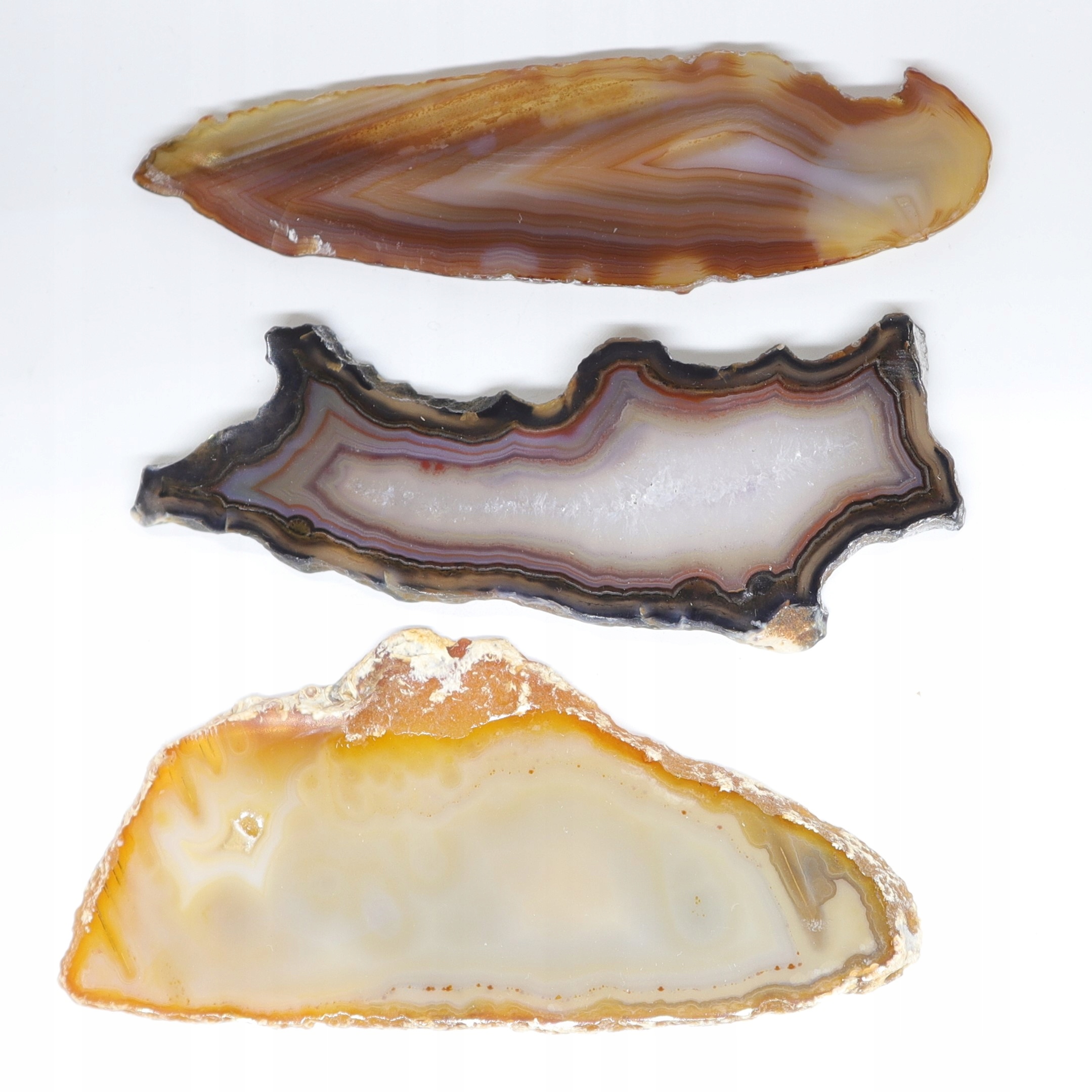 Plastry cięte z naturalnego agatu, polerowane. Plastry różnią się odcieniem, wzorem, kolorem i rozmiarem.