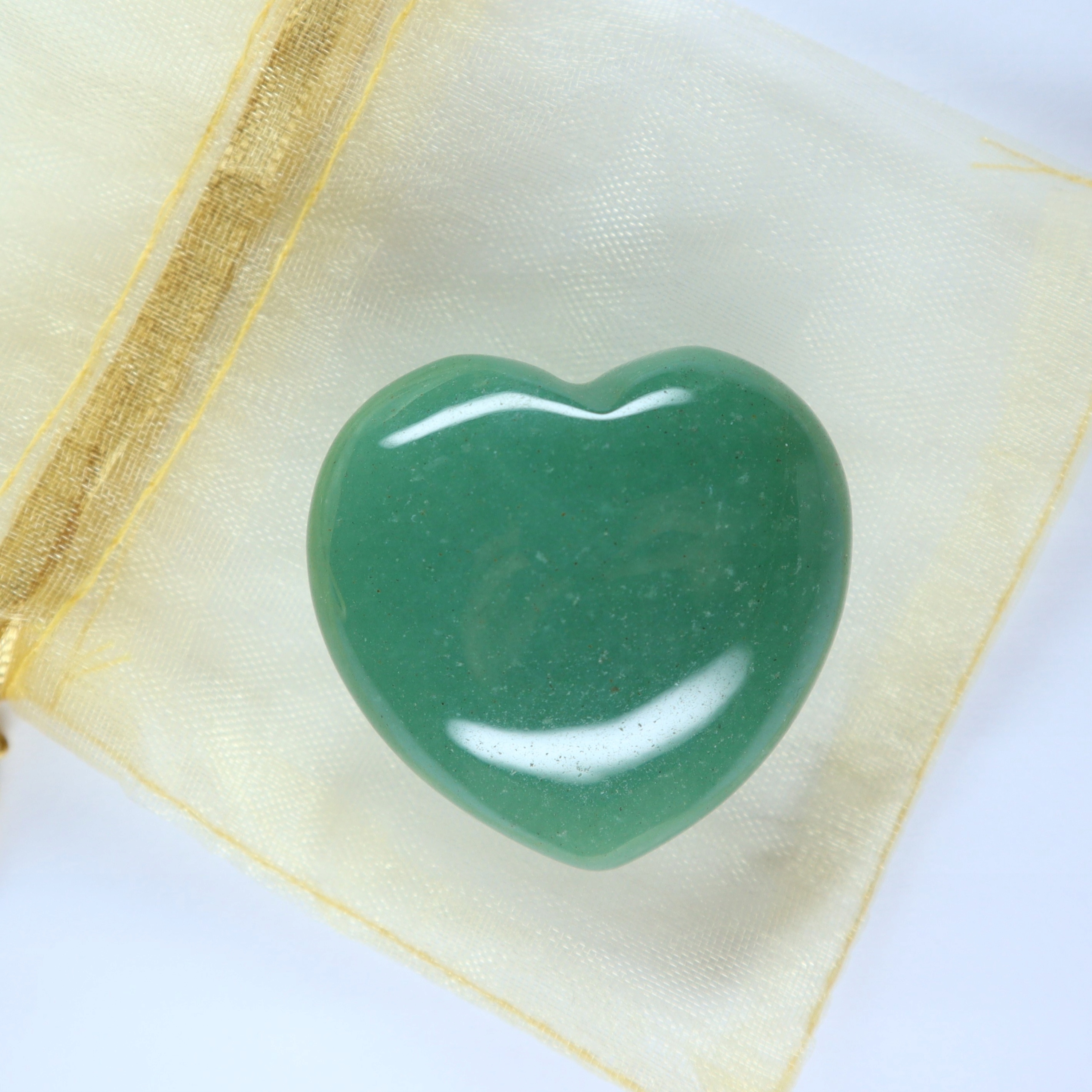 Polerowany naturalny awenturyn w kształcie serca o zmiennej grubości: u góry ok 1,5cm w najgrubszym miejscu 1,8-2,0cm