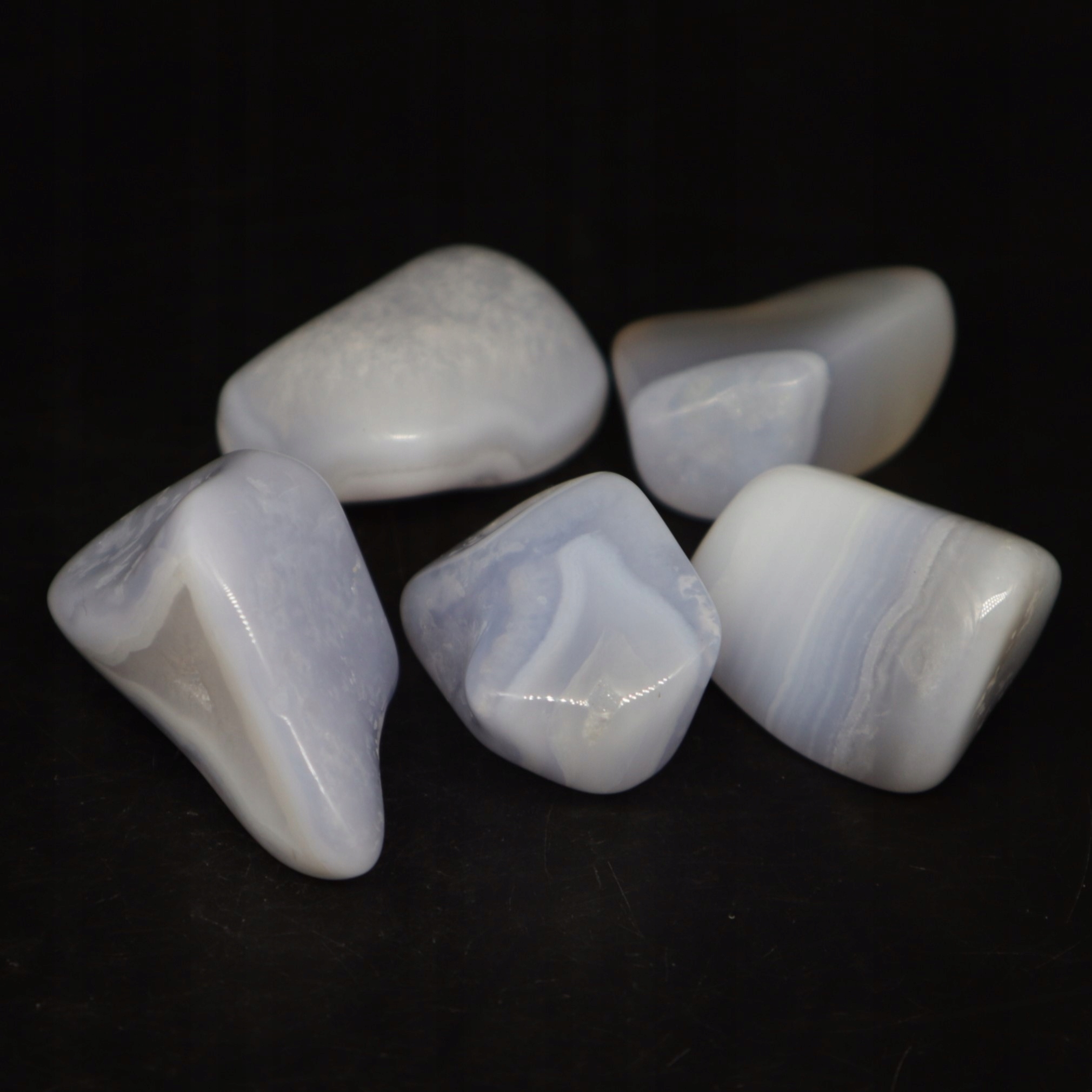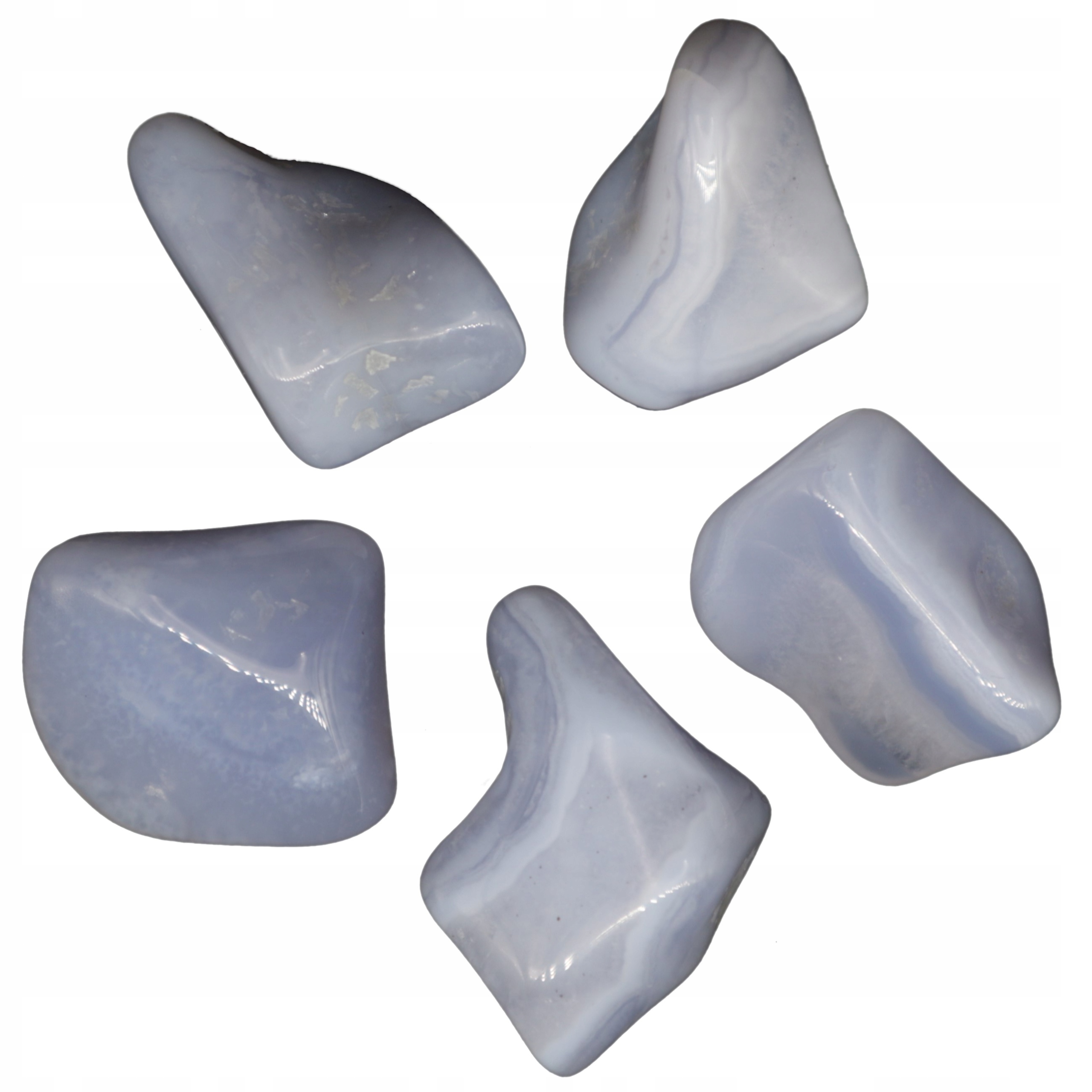 Naturalny, otoczak chalcedon niebieski (błękitny) pochodzący z Malawi.