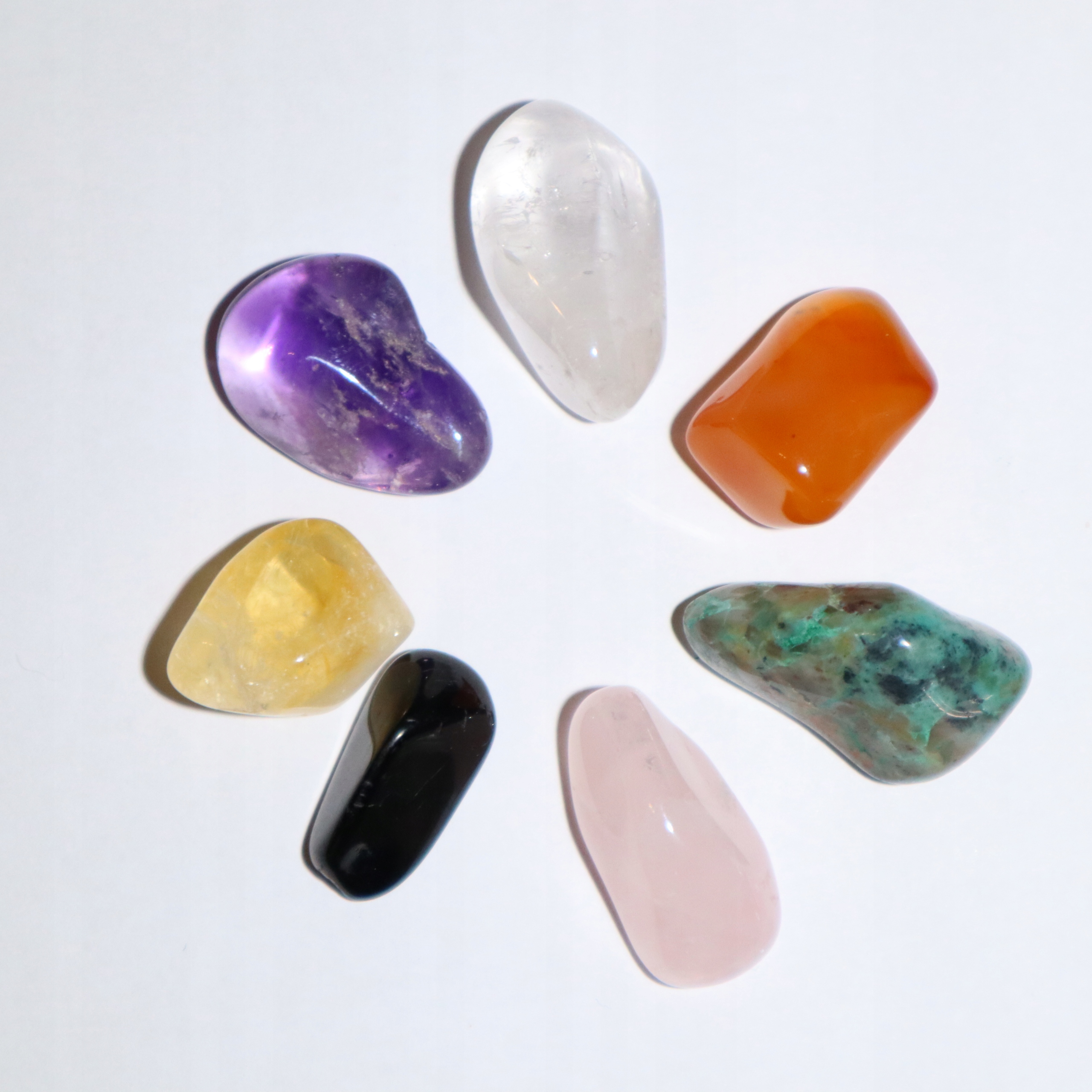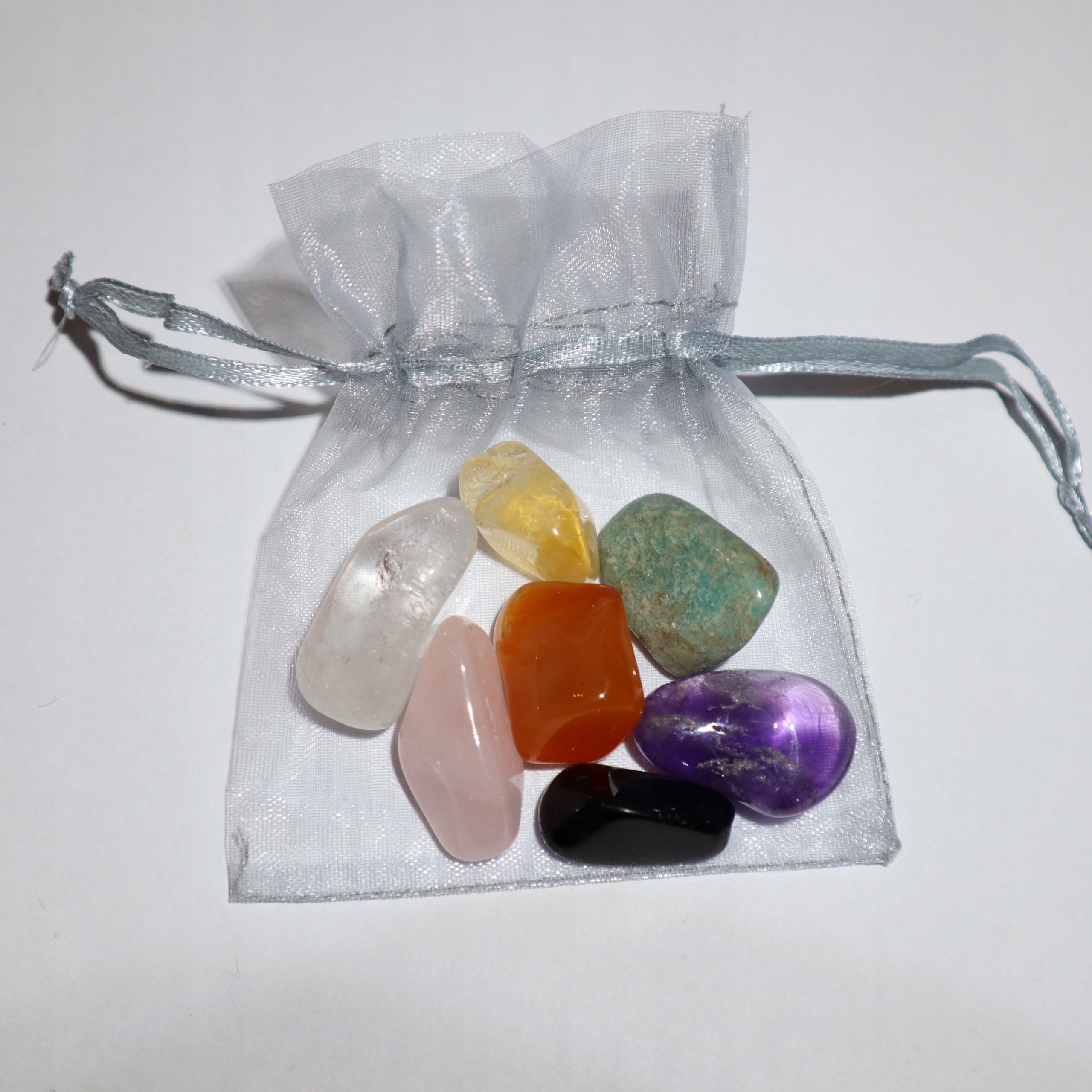 W skład zestawu wchodzi 7 kamieni czakry dodających energii.
