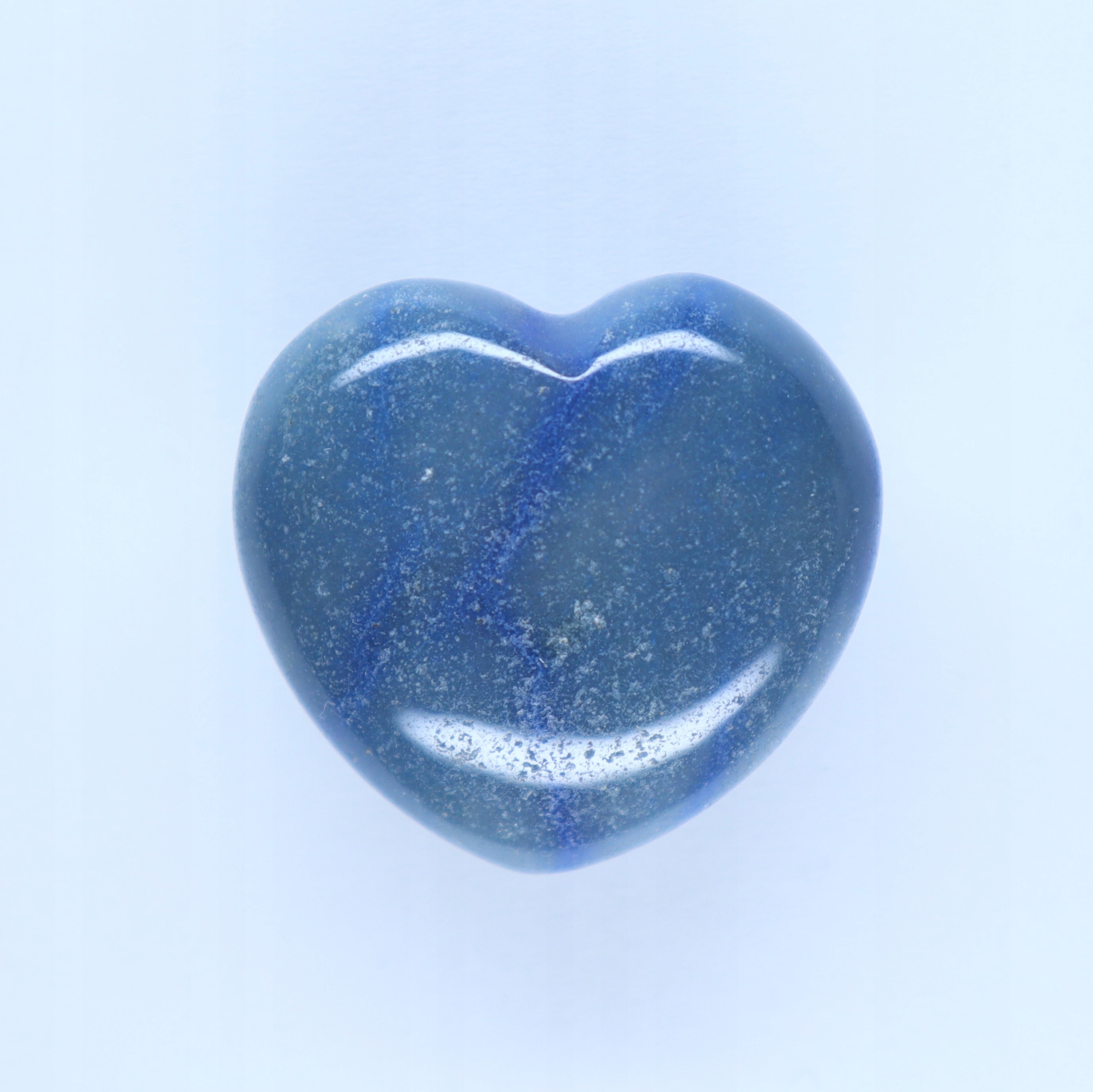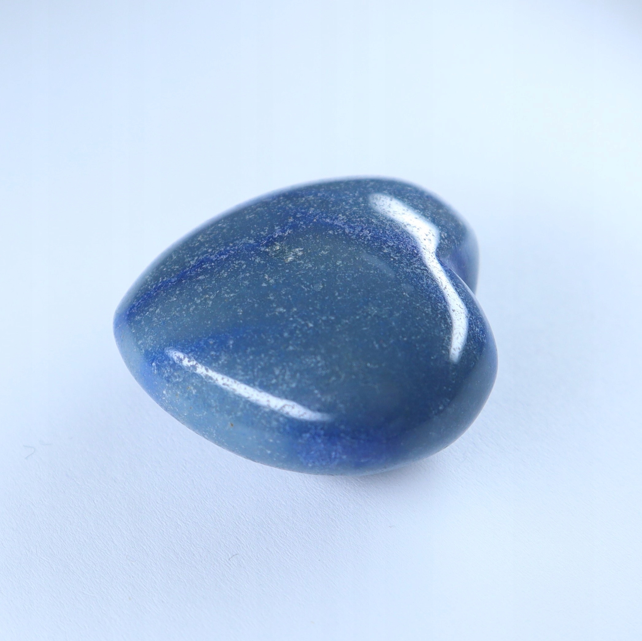 Polerowany naturalny kwarc niebieski w kształcie serca o zmiennej grubości: u góry ok 1,5cm w najgrubszym miejscu 1,8-2,0cm