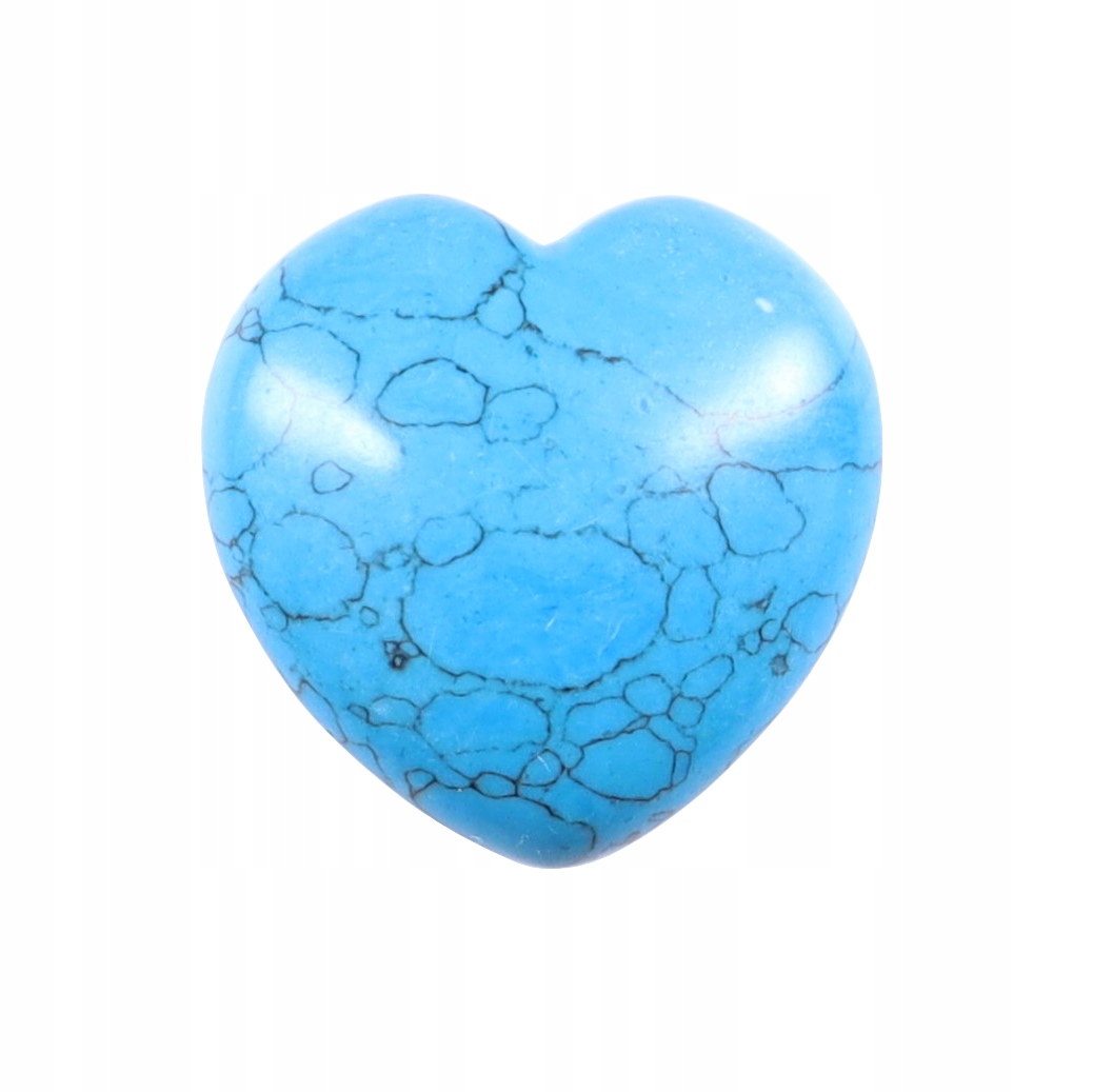 Polerowany naturalny turkmenit (howlit) w kształcie serca o zmiennej grubości: u góry ok 1,5cm w najgrubszym miejscu 1,8-2,0cm