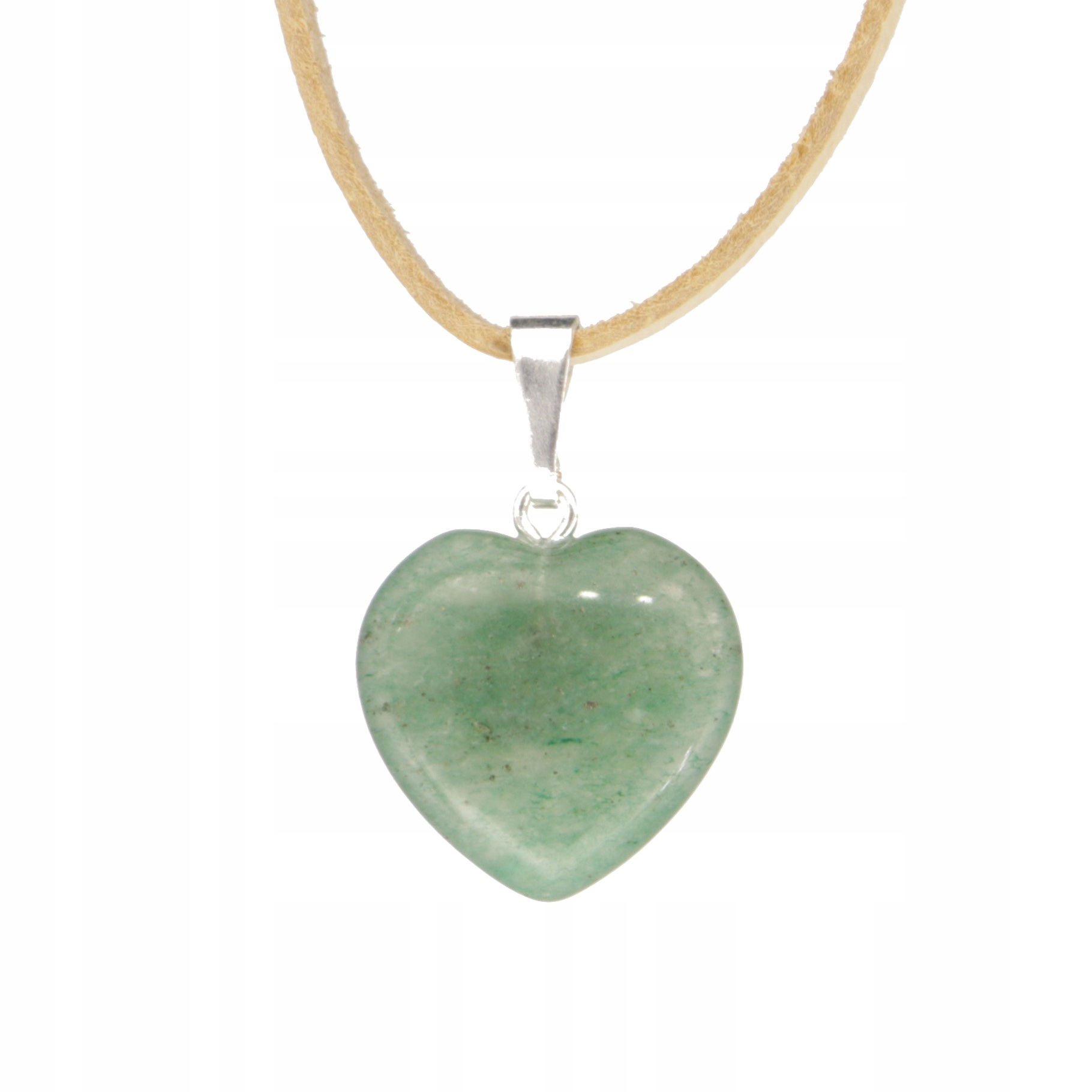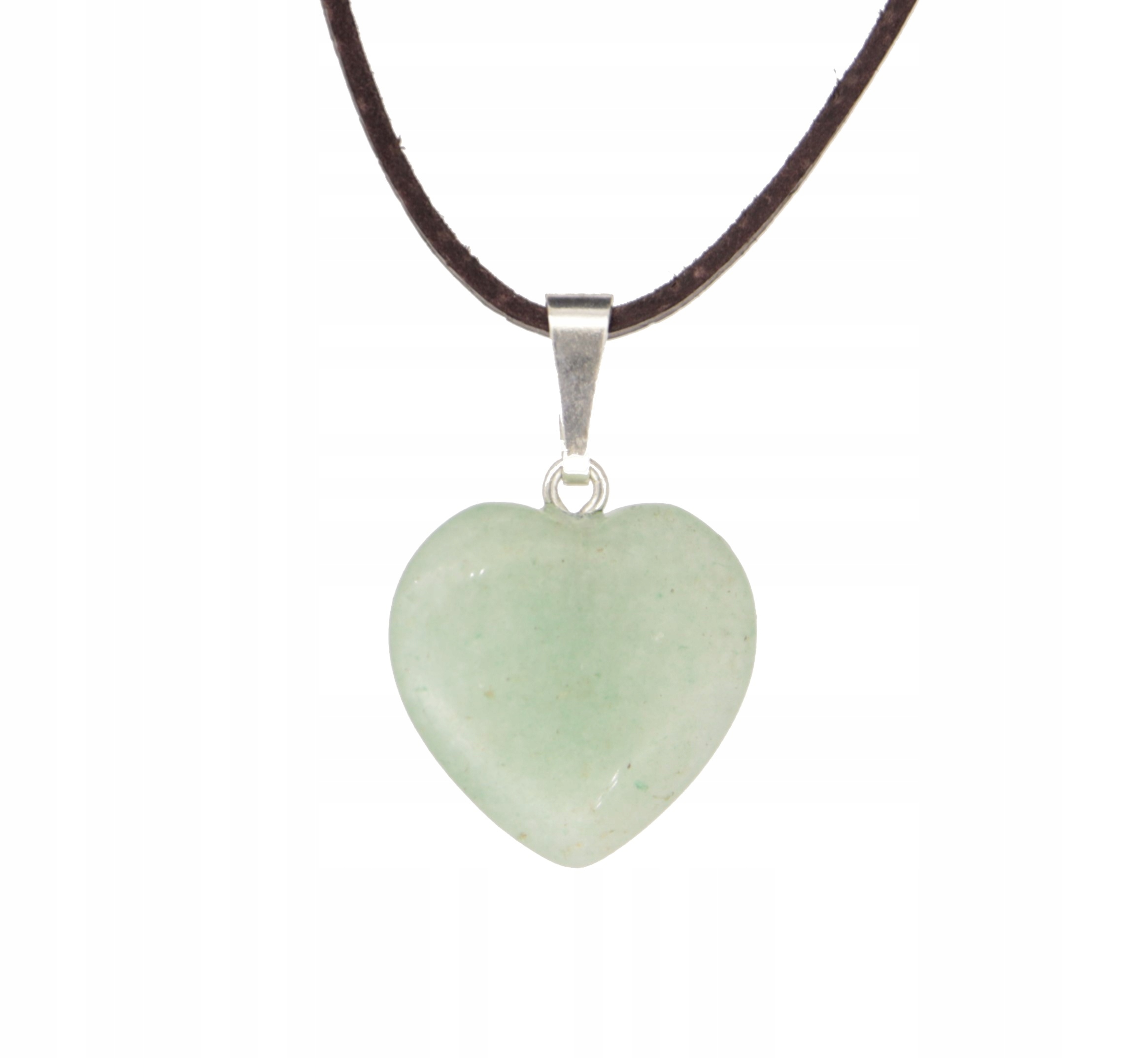 Wisiorek w kształcie serca z naturalnego kamienia na rzemyku.