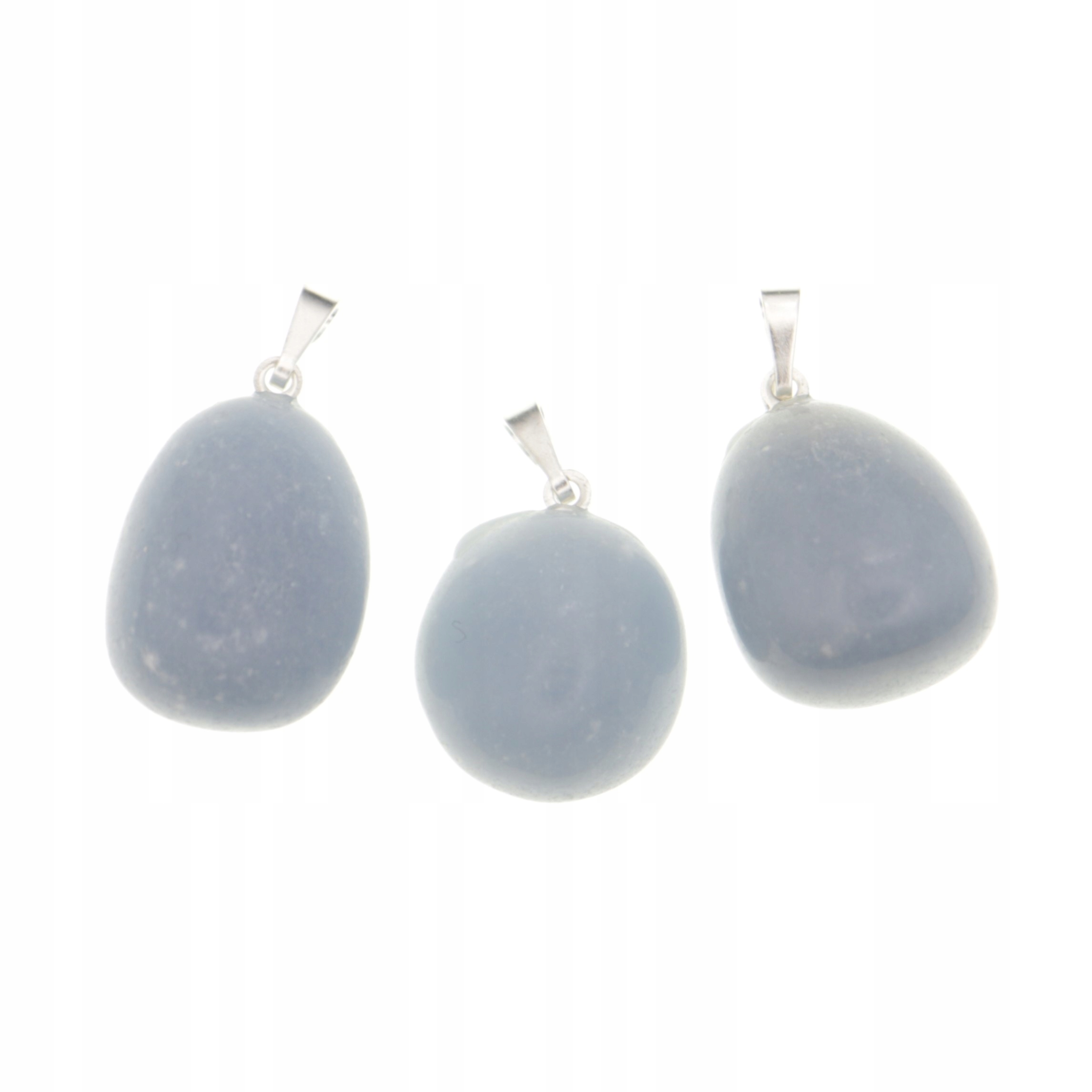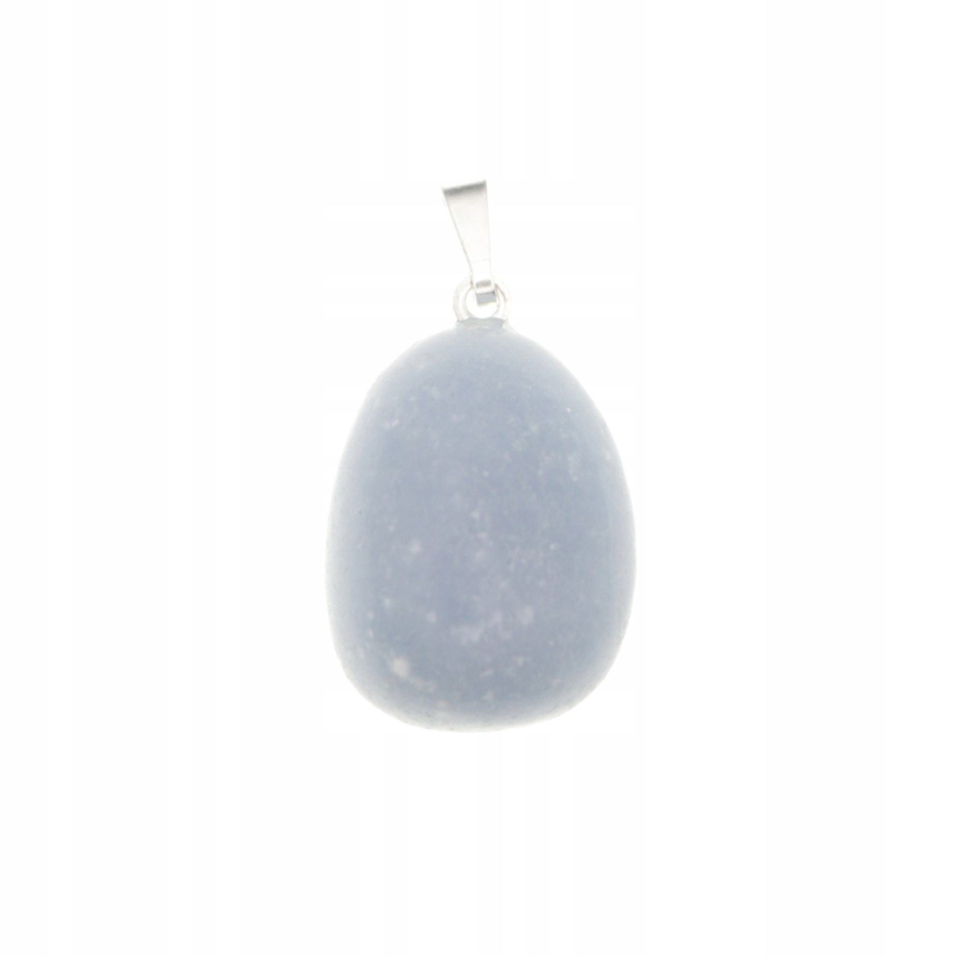 Szlifowana i polerowana kamienna bryłka angelitu rozmiaru M z zawieszką koloru srebrnego.